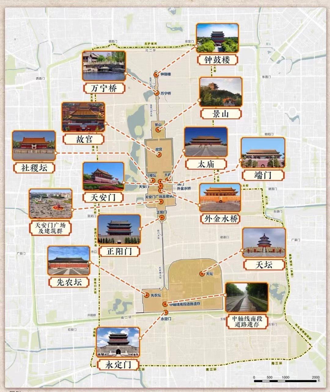 包含15處遺產(chǎn)構(gòu)成要素的北京中軸線