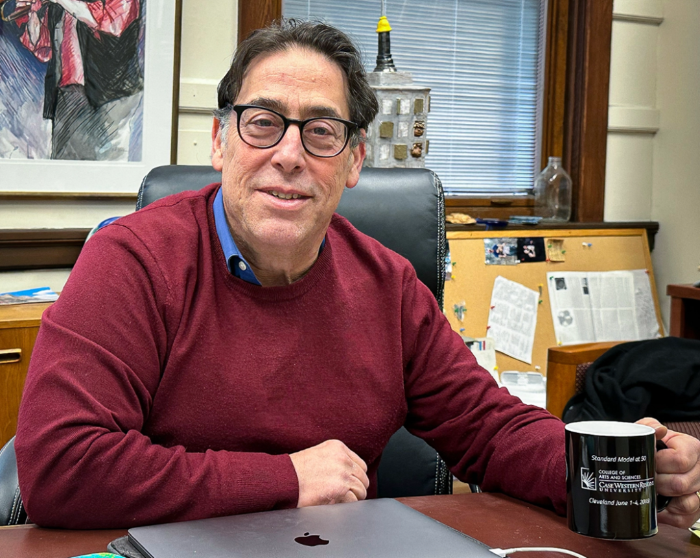 Compact合作組的負責人格倫·斯塔克曼正在繪制宇宙可能具有特殊形狀時會產生的信號圖譜。圖片來源:大衛(wèi)·辛茨(David Hintz)/凱斯(Case) 西儲大學
